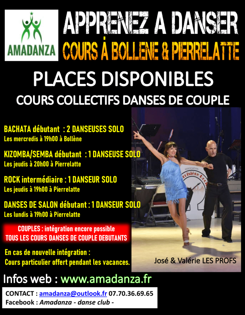 La saison danse démarre !! Essais gratuits sans pré inscription sans engagement !! Mercredi et Vendredi : danse jeunesse à Bollène pour les filles et les garçons, en solo ou à deux. Photos gala 2025 et compétition Bollène 2025