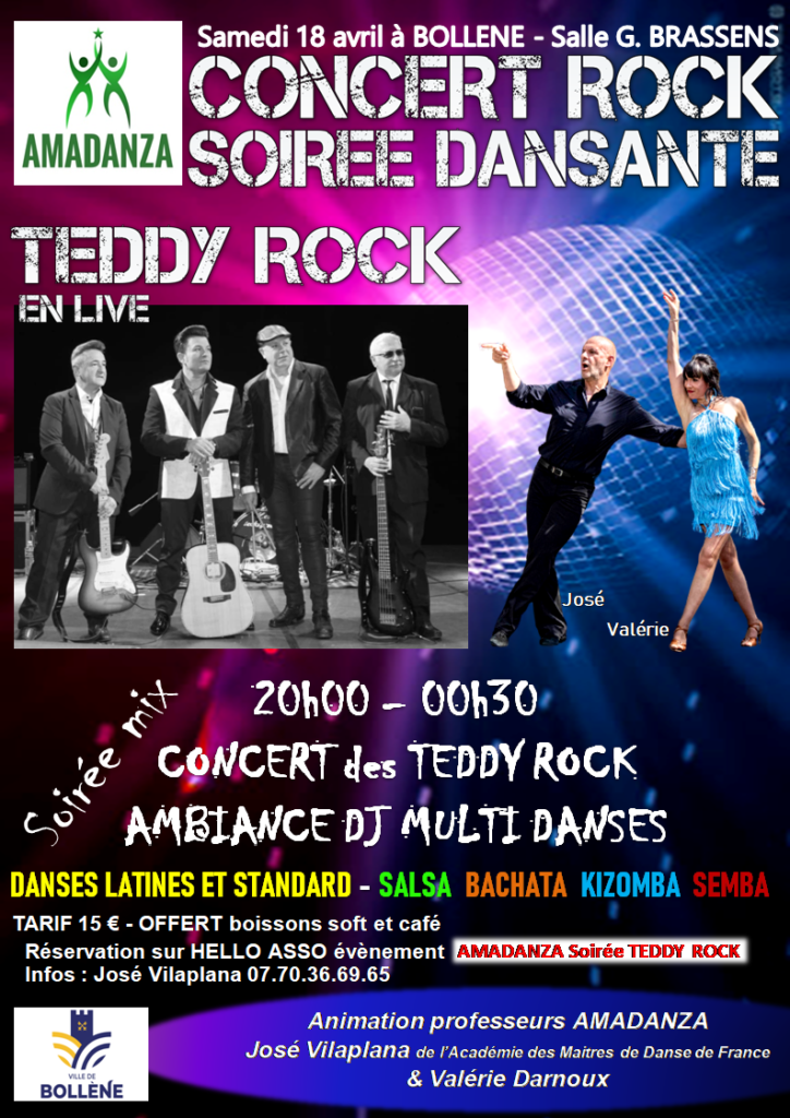 Réservation : https://www.helloasso.com/associations/amadanza/evenements/amadanza-soiree-teddy-rock